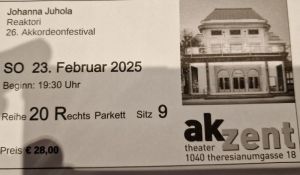 Seit ich Herbert Pixner kennen und lieben gelernt habe, kommt mir immer öfter Akkordeonmusik in meinen Playlists vor. Ich mag die französische Art. Die Künstlerin Johanna Juhola aus Finnland hat mich auch mit ihrer Art und Weise, auch modern und mit Rap kombiniert, begeistert.